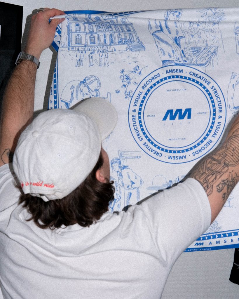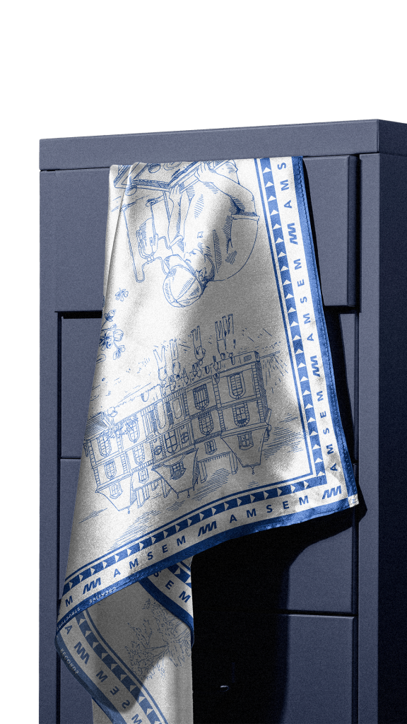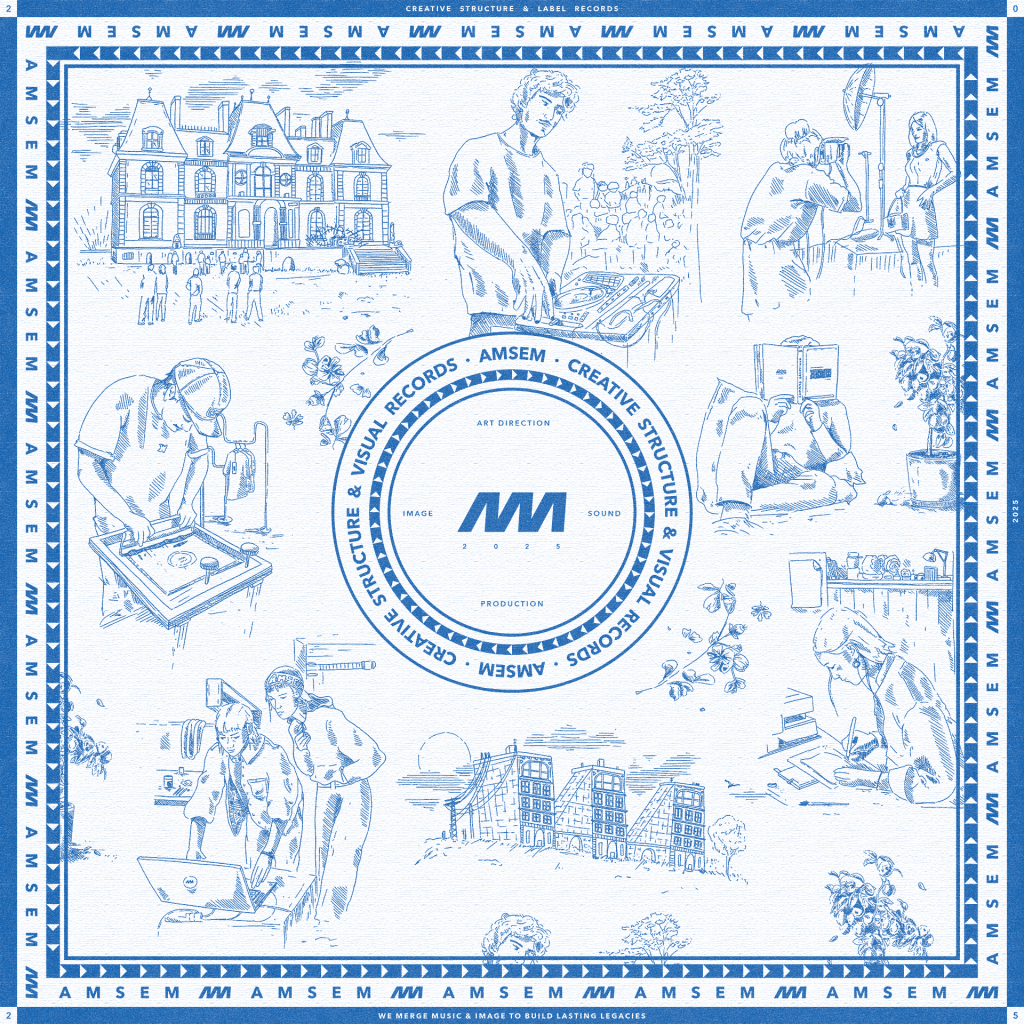 Chaque domaine d’expertise du studio y est représenté sous forme de petites scènes, illustrées dans un style classique, évoquant l’ancrage et la solidité d’AMSEM dans le temps.