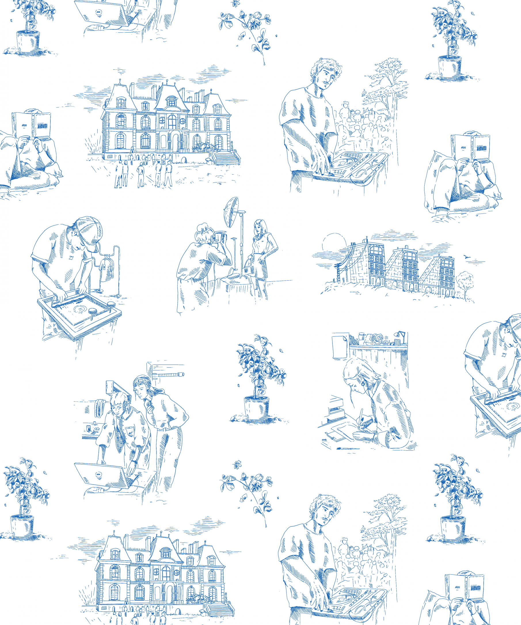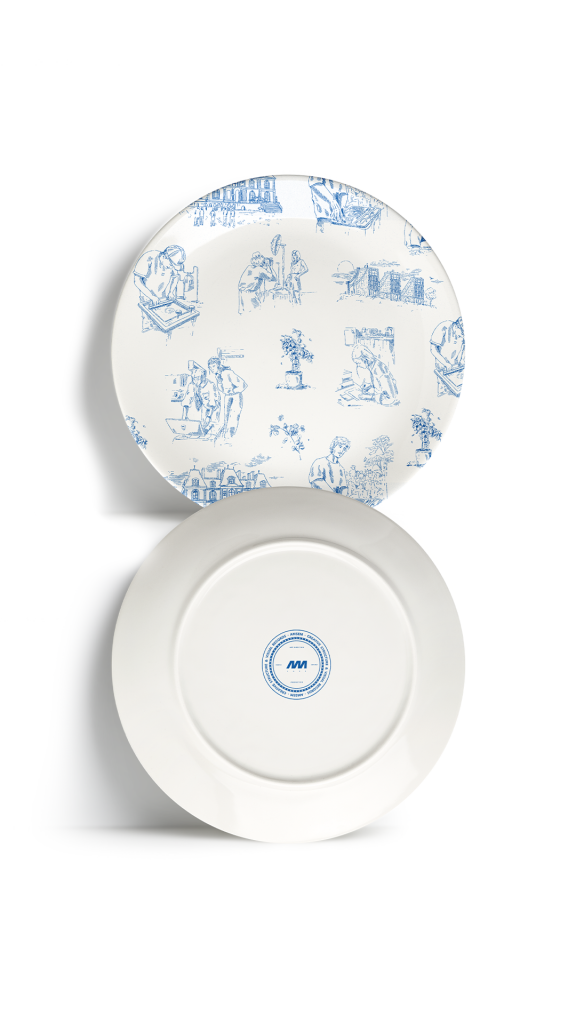 Représentation du savoir-faire d’AMSEM à travers une illustration inspirée du style de la toile de Jouy.