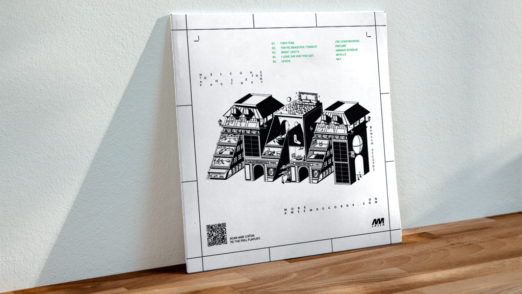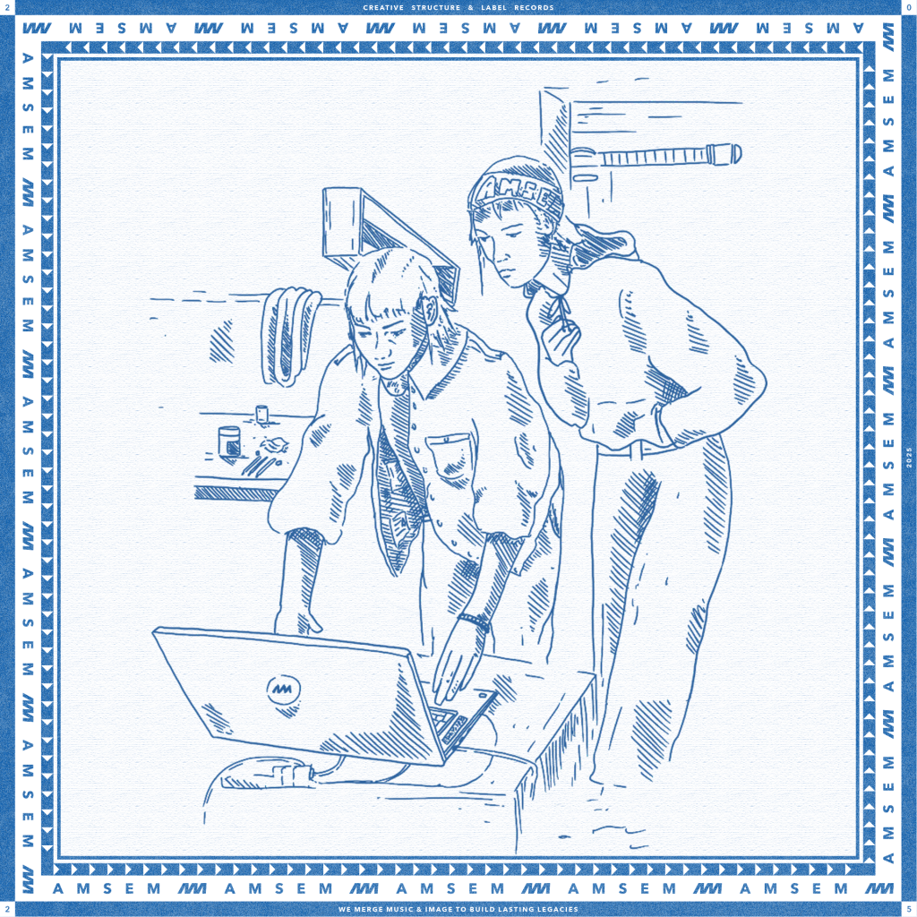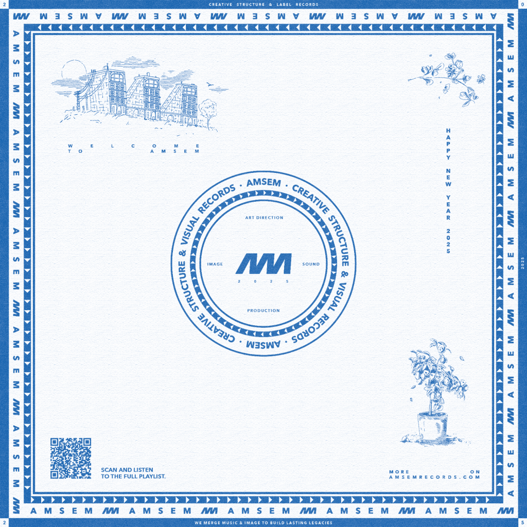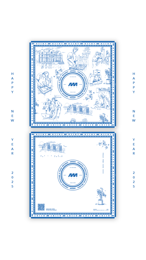 À l’occasion de la nouvelle année, AMSEM propose à ses clients, partenaires et artistes une création visuelle sous forme de pochette de vinyle 45T, représentative de l’univers du studio. Pour les années 2024 et 2025, j’ai réalisé deux illustrations / concepts d’objets physiques, inspirés du savoir-faire et de l’identité d’AMSEM. Chaque création prend la forme d’une pochette de vinyle contenant un poster A3 de l’illustration en grand format.