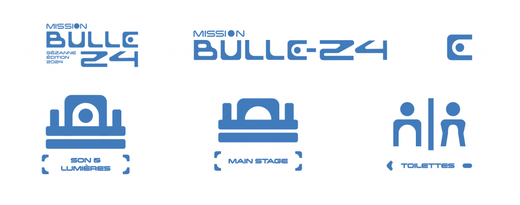 Développement d’un système graphique et d’une charte pour le festival, ancrés dans un univers spatial. Ce travail comprend un logo, une série de pictogrammes et une iconographie dédiée. Le point central du logo symbolise la bulle, propulsée par une forme graphique récurrente, issue des lettres «u» et «e» de Bulle, un symbole qui devient un élément clé de l’identité visuelle du festival.